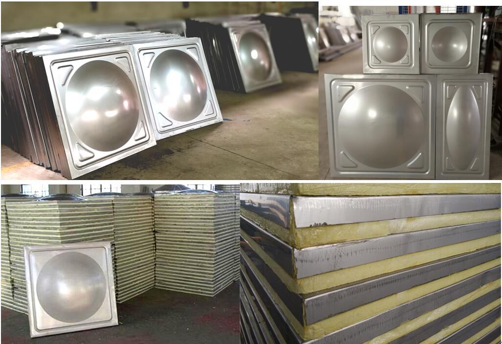 不锈钢水箱冲压模板:采用SUS304食品级一级材料(选用SUS316、sus444、201材料)专业设备模压成型标准板块,冲压板规格1000x1000、1000x500、500x500、1000x750、750x500,冲压板厚度0.5mm—3.0mm不锈钢水箱保温复合板:保温水箱通用的聚氨酯发泡保温材料及水箱外胆材料连体预制复合板,保温水箱在厂外安装,复合板可直接与水箱内胆扣接,施工方便快捷。
